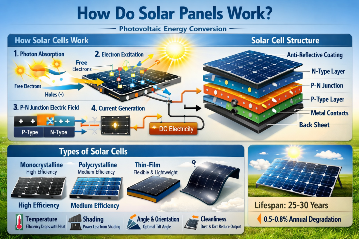 April 17, 2026Categories NewsHow Do Solar Panels Work? Complete Guide to Photovoltaic Energy Conversion